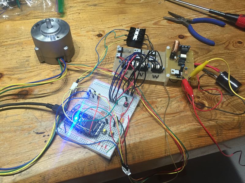 ホールセンサーのBit変化がテスト用の小型モータと違ったため、変更を余儀なくされた。