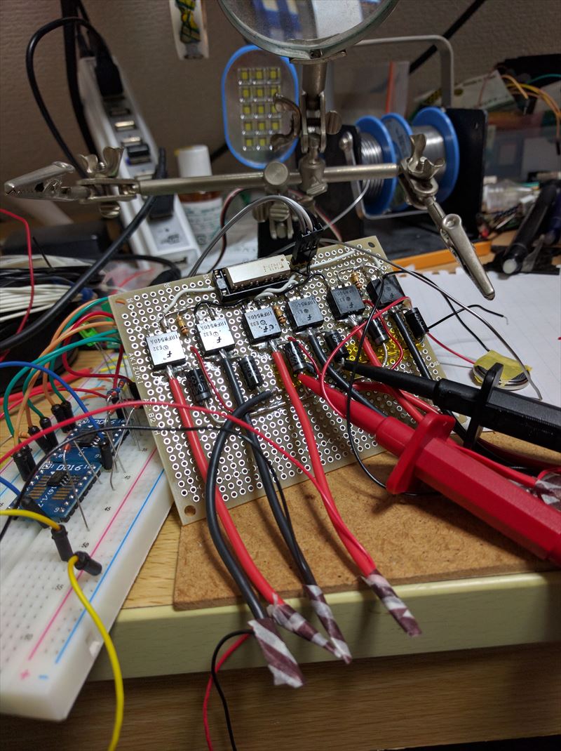 かなりの発熱が確認された。放熱器のサイズ、設置方法を検討しなければならない。